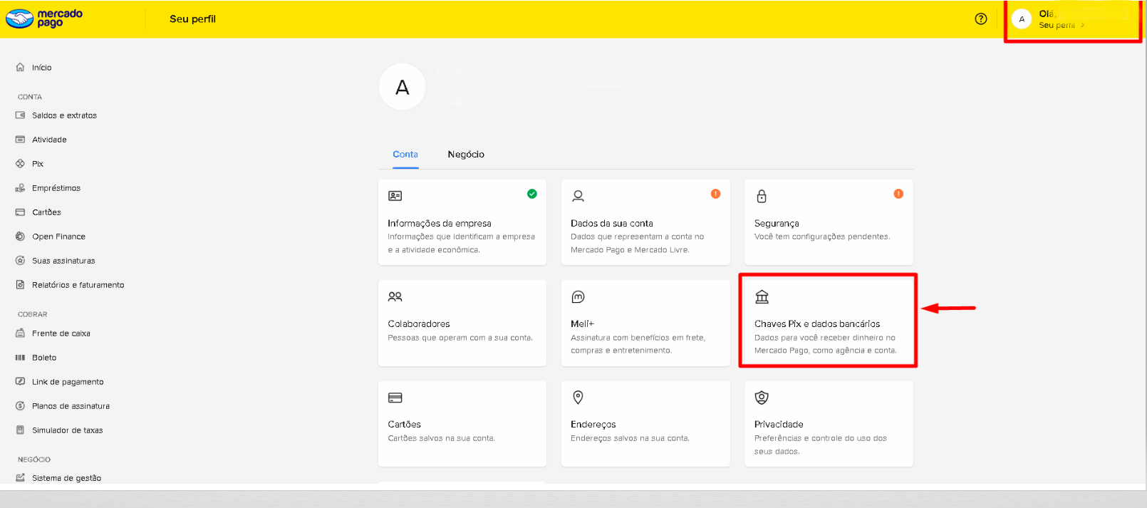 - Localize as Chaves Pix: No menu, selecione a opção "Chaves Pix e dados bancários".