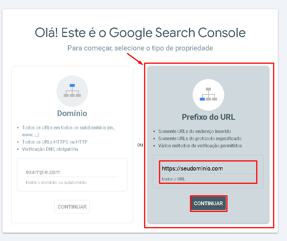 1. Adicione sua propriedade no Google Search Console