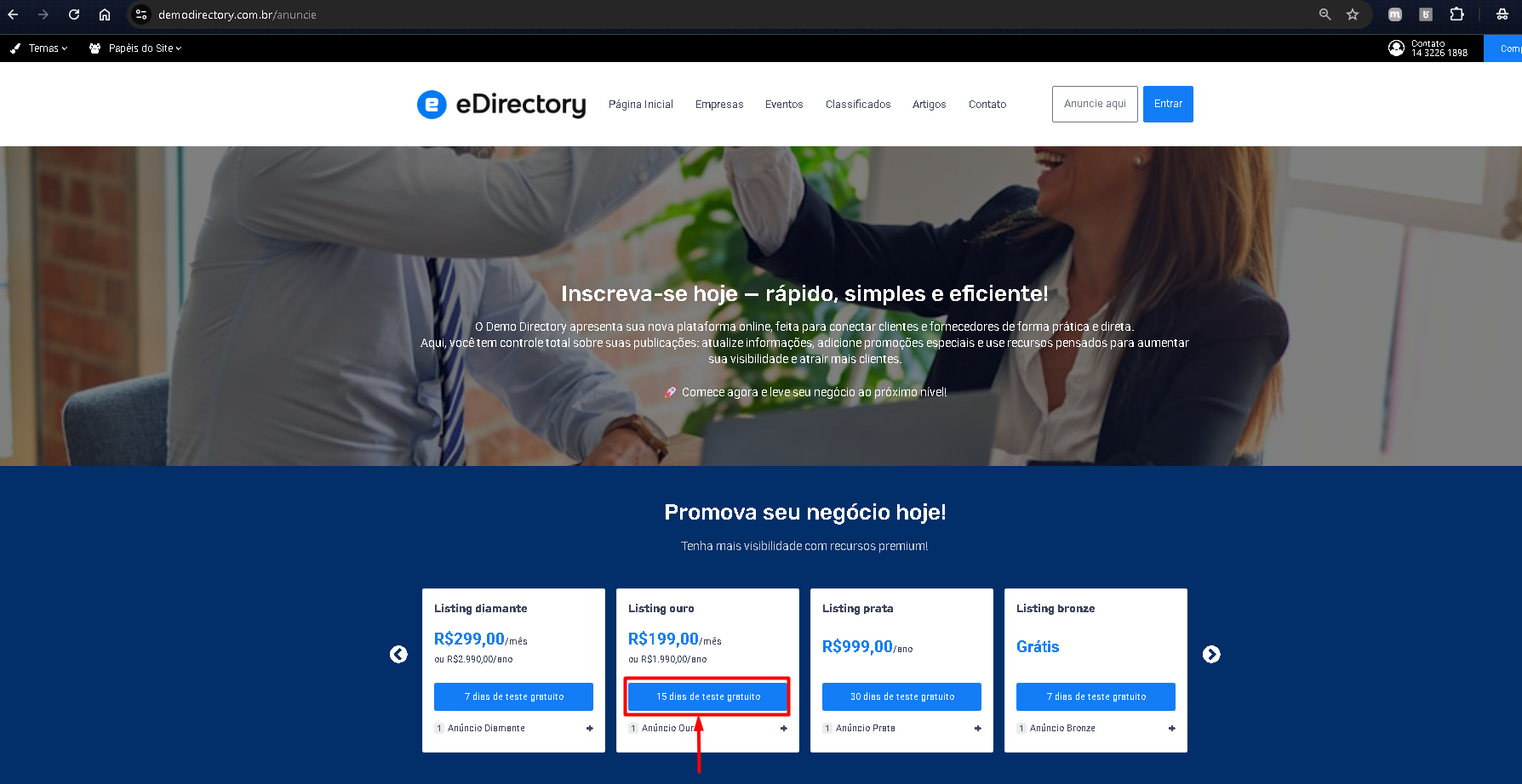 Muitos clientes podem começar utilizando um plano gratuito no seu site eDirectory, mas em algum momento desejarão fazer um upgrade para um plano pago, a fim de aproveitar recursos e benefícios adicionais que os planos mais avançados oferecem.