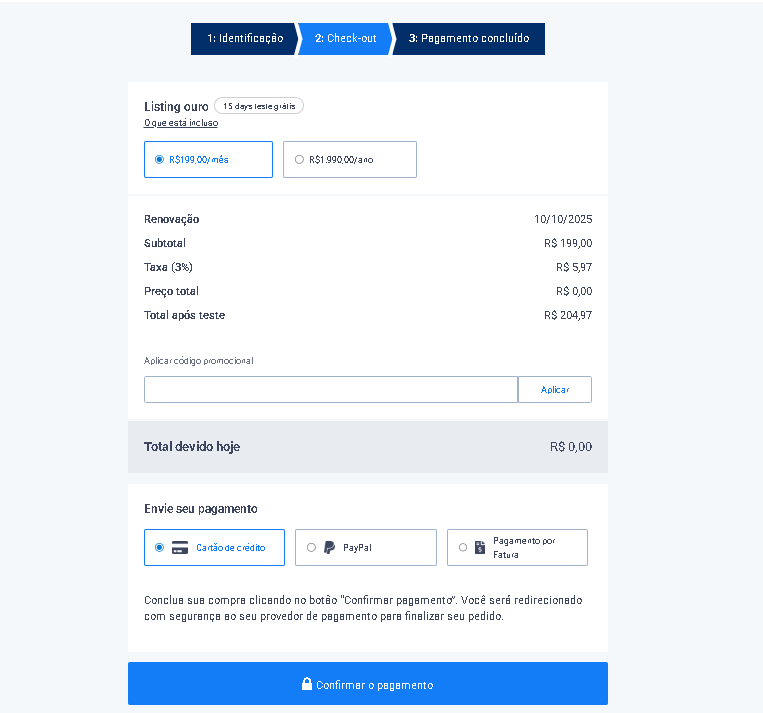 Para fins didáticos, vamos considerar o exemplo de um usuário que assinou inicialmente um plano grátis e agora deseja atualizar para um plano pago. Abaixo, descrevemos todo o processo, passo a passo.