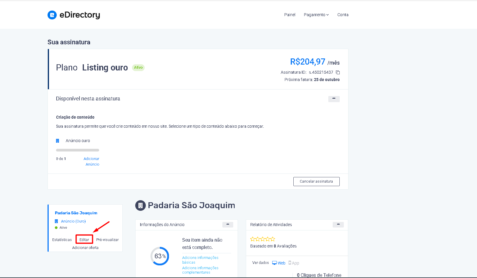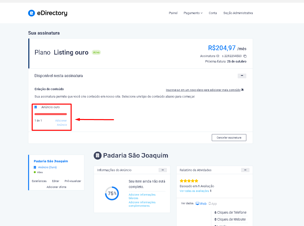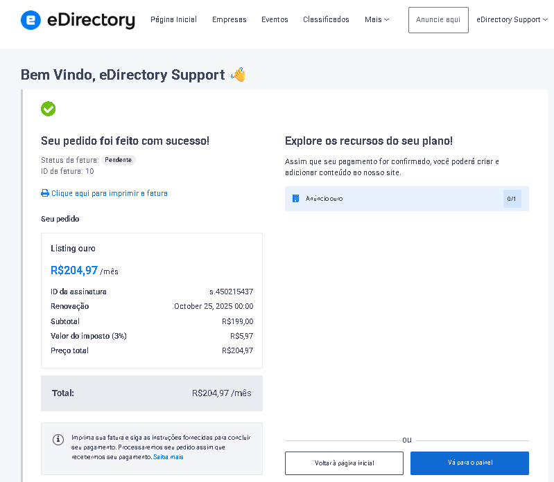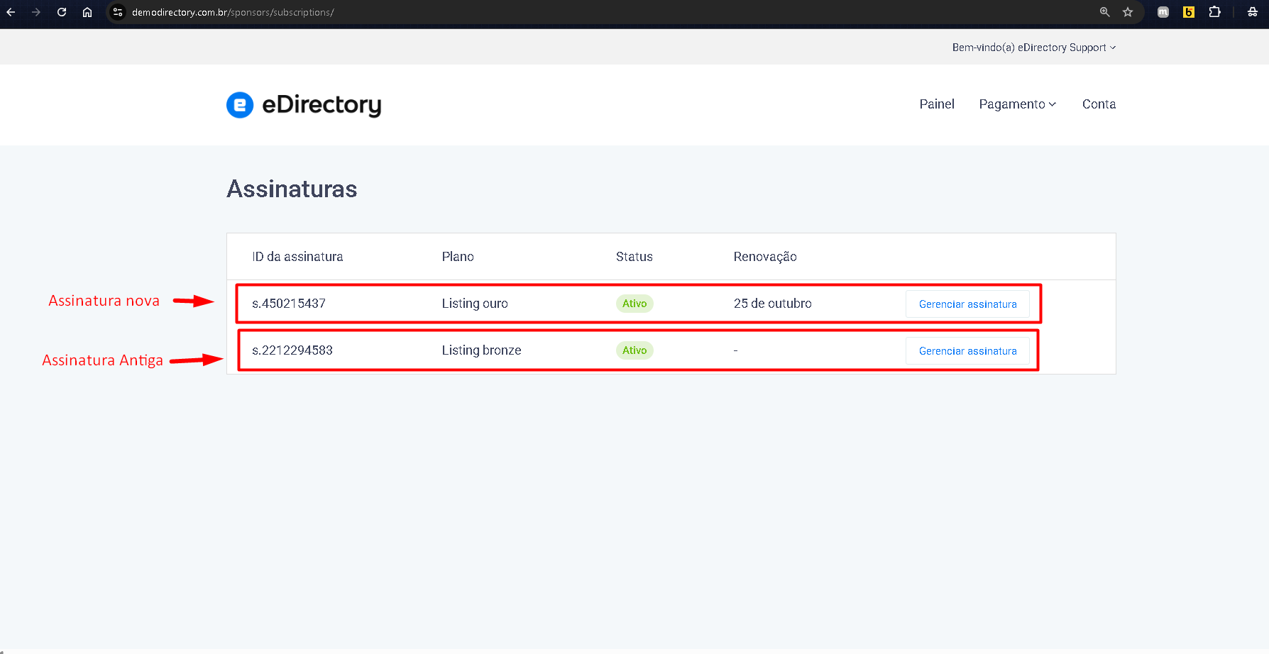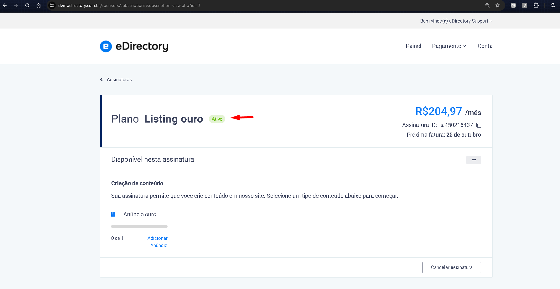 - Ali, será exibido o status da nova assinatura, indicando que ela está ativa.